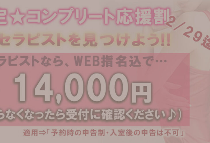 【開催中】初めて逢うセラピストは指名料ゼロ円キャンペーン!